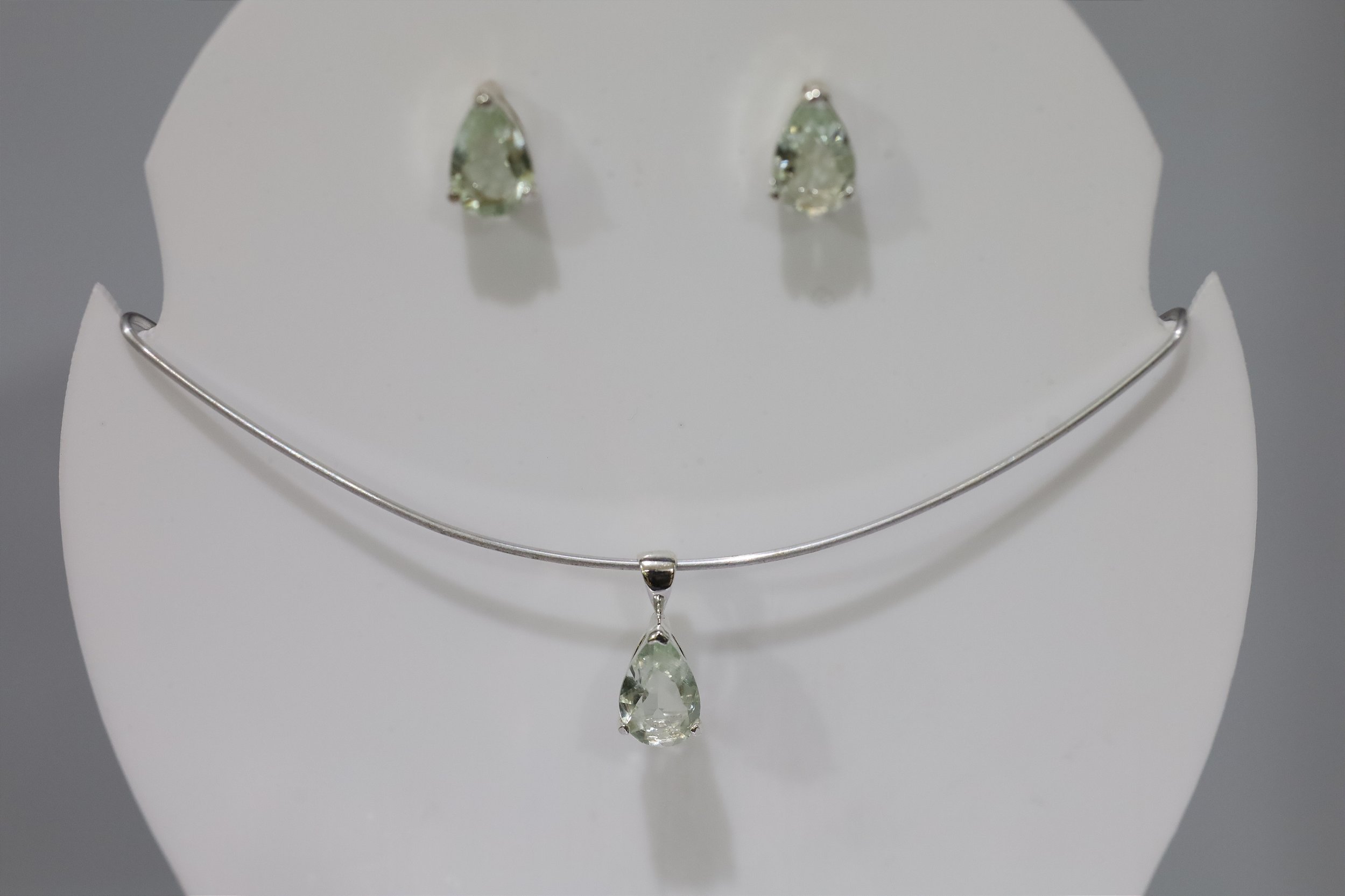 Brincos e Pingente em Prata  com Prasiolita natural