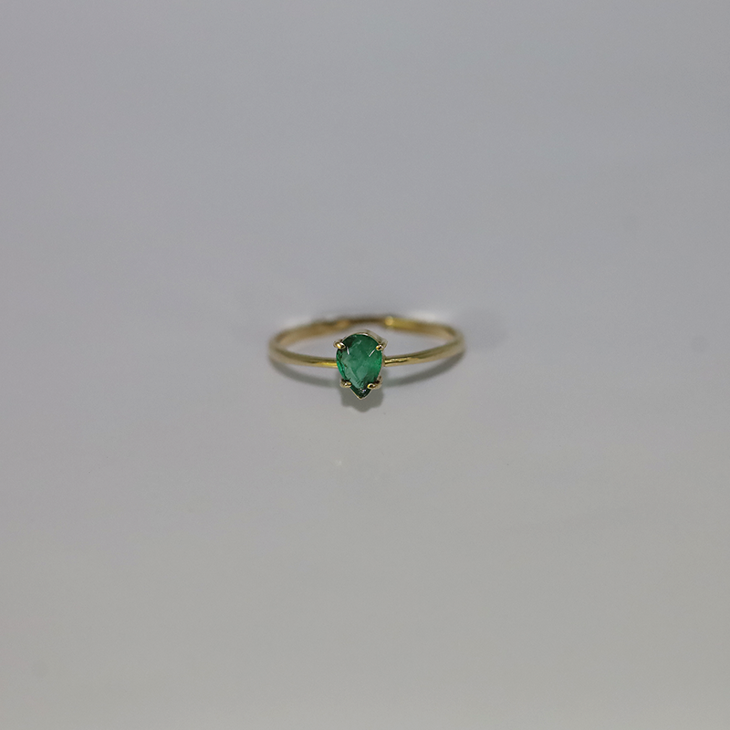 Anel de Esmeralda em Ouro 18k, lapidação gota.