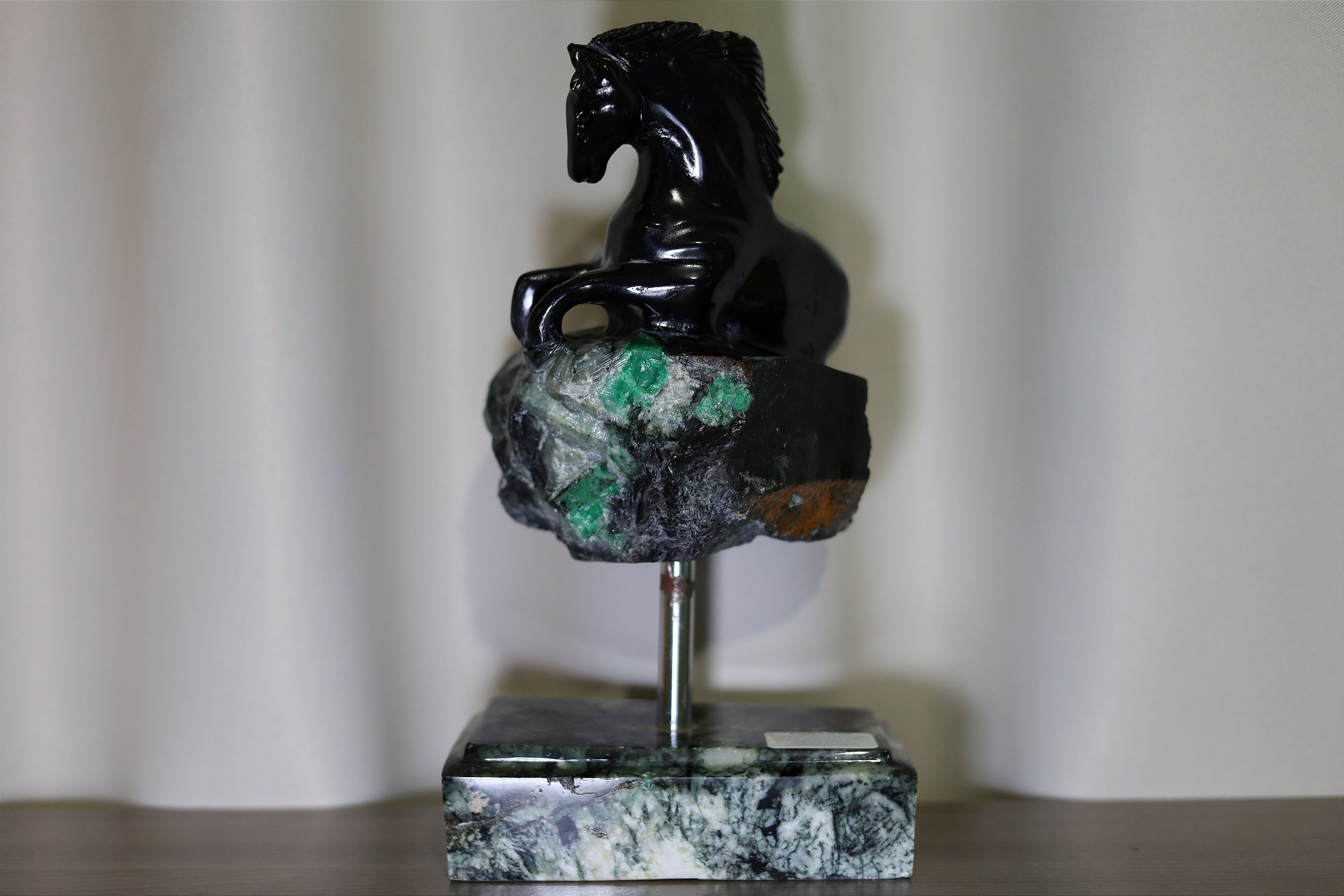 Cavalo em Esmeralda com Base giratoria Altura 29cm 4.3kg