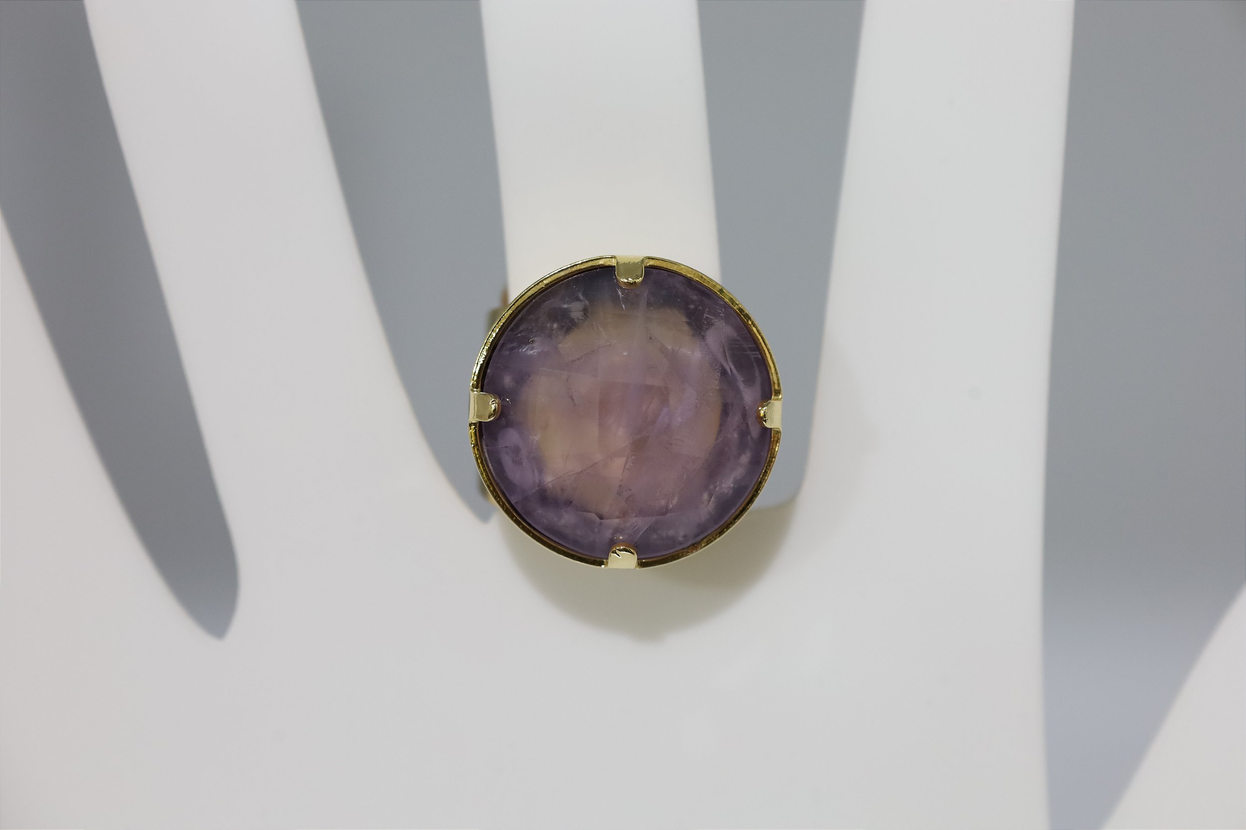 Anel de ametista natural em prata banhado a ouro, ajustavel
