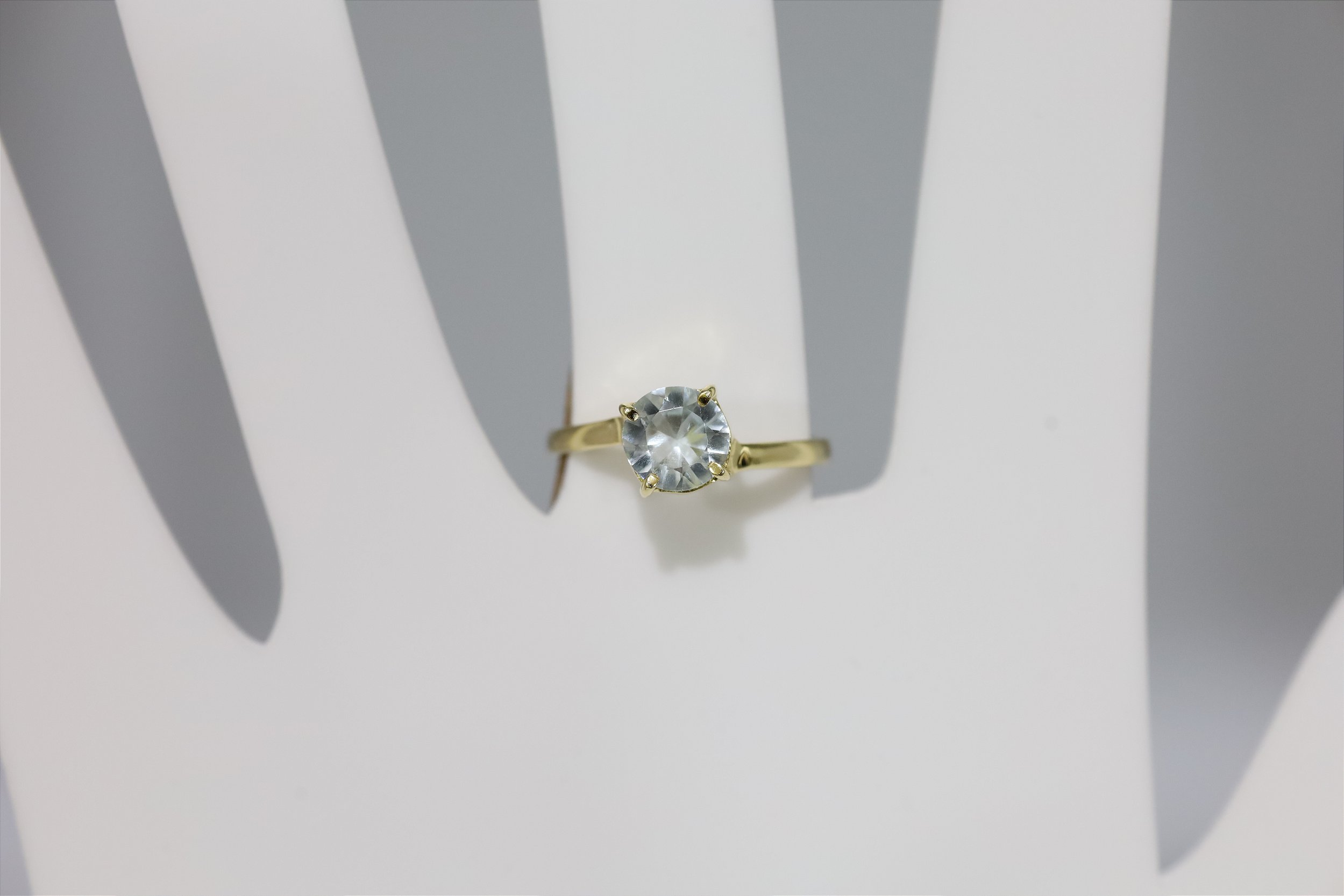 Anel de agua marinha natural em prata banhado a ouro
