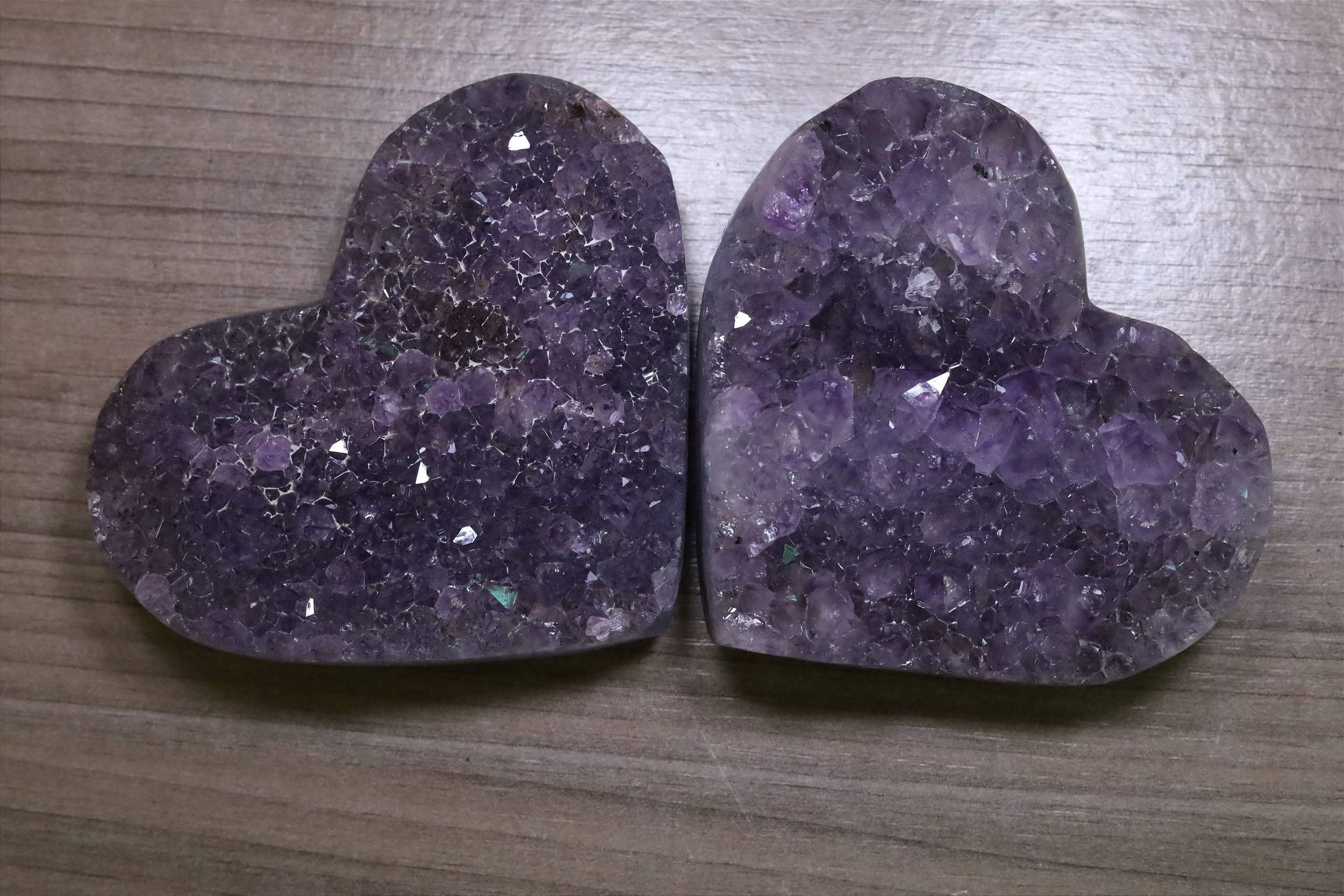 Par de Corações de Ametista 652gr Lar 10cm