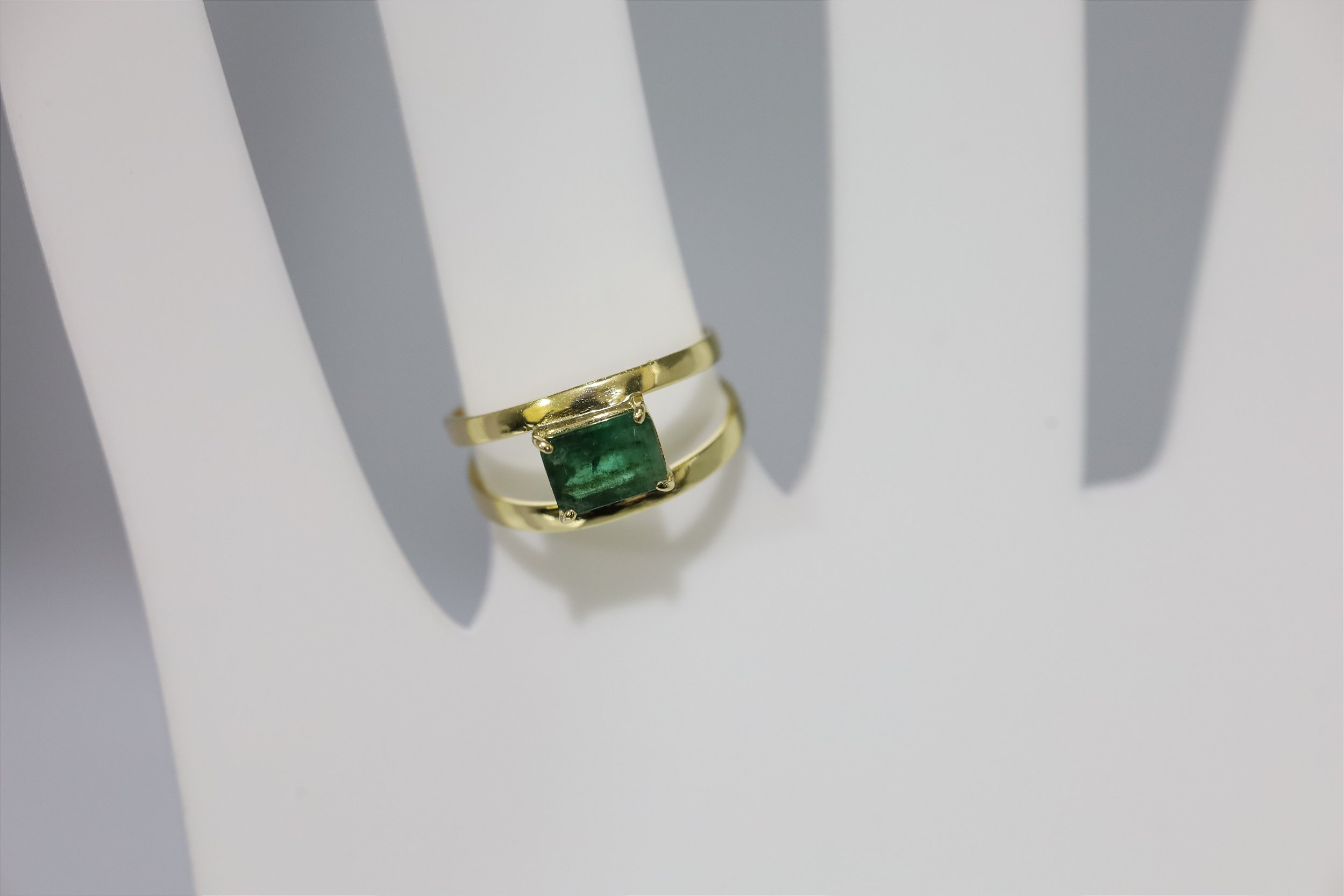 Anel de prata banhado a ouro com esmeralda natural