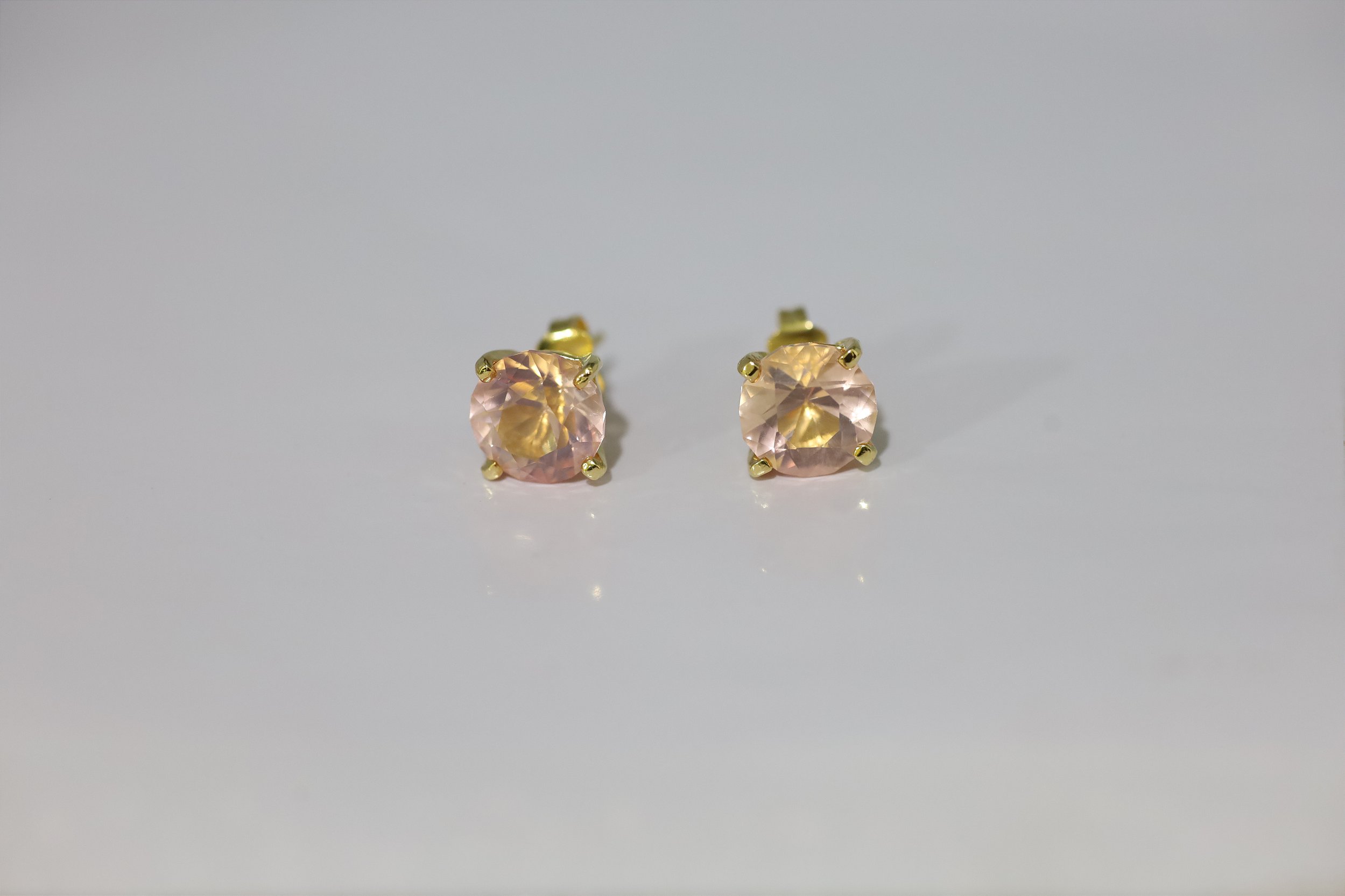 Brincos em Prata banhado a ouro com Quartzo Rosa natural